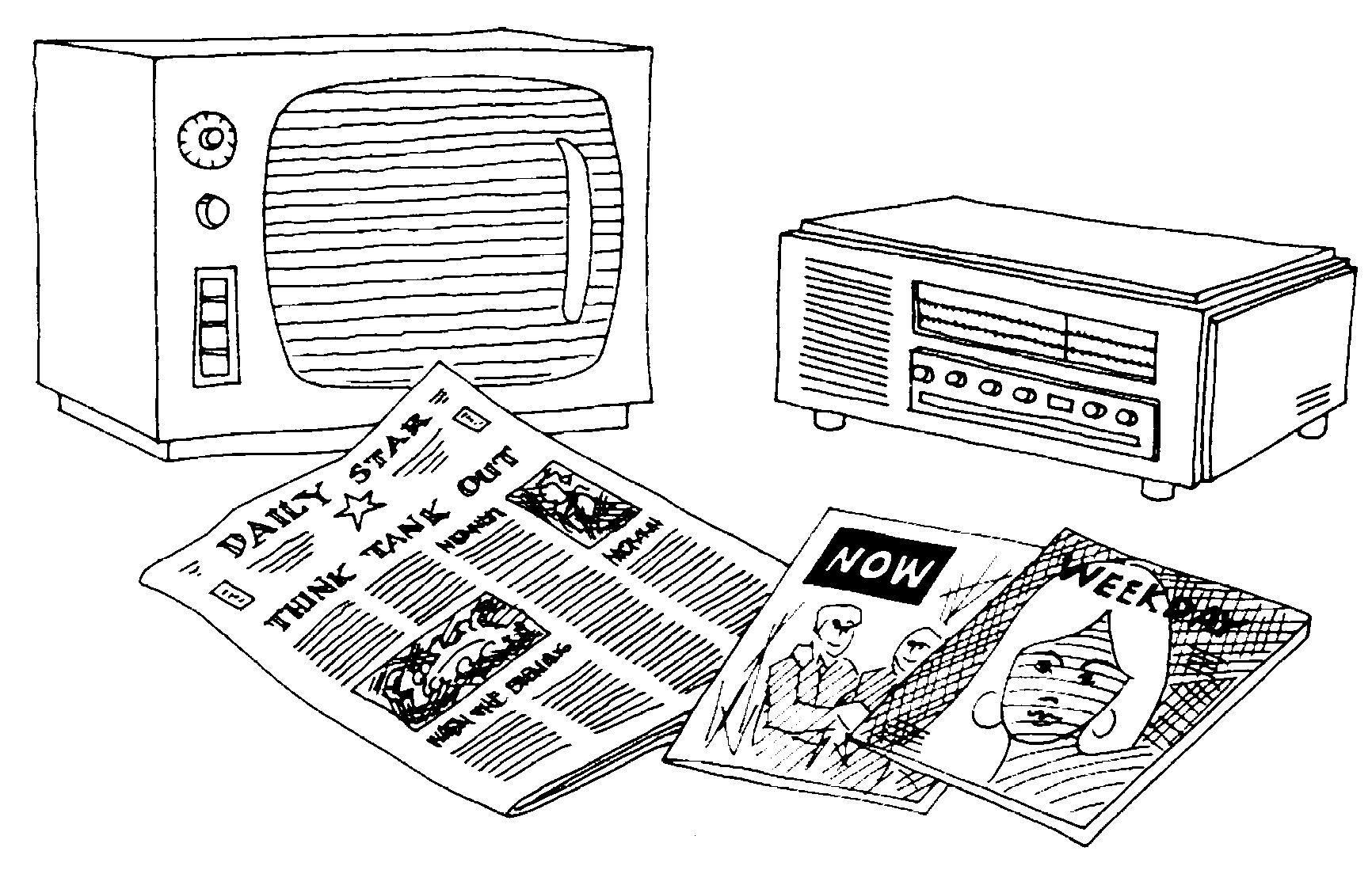 by which is meant newspapers, TV, radio and